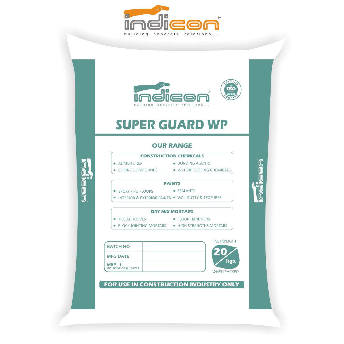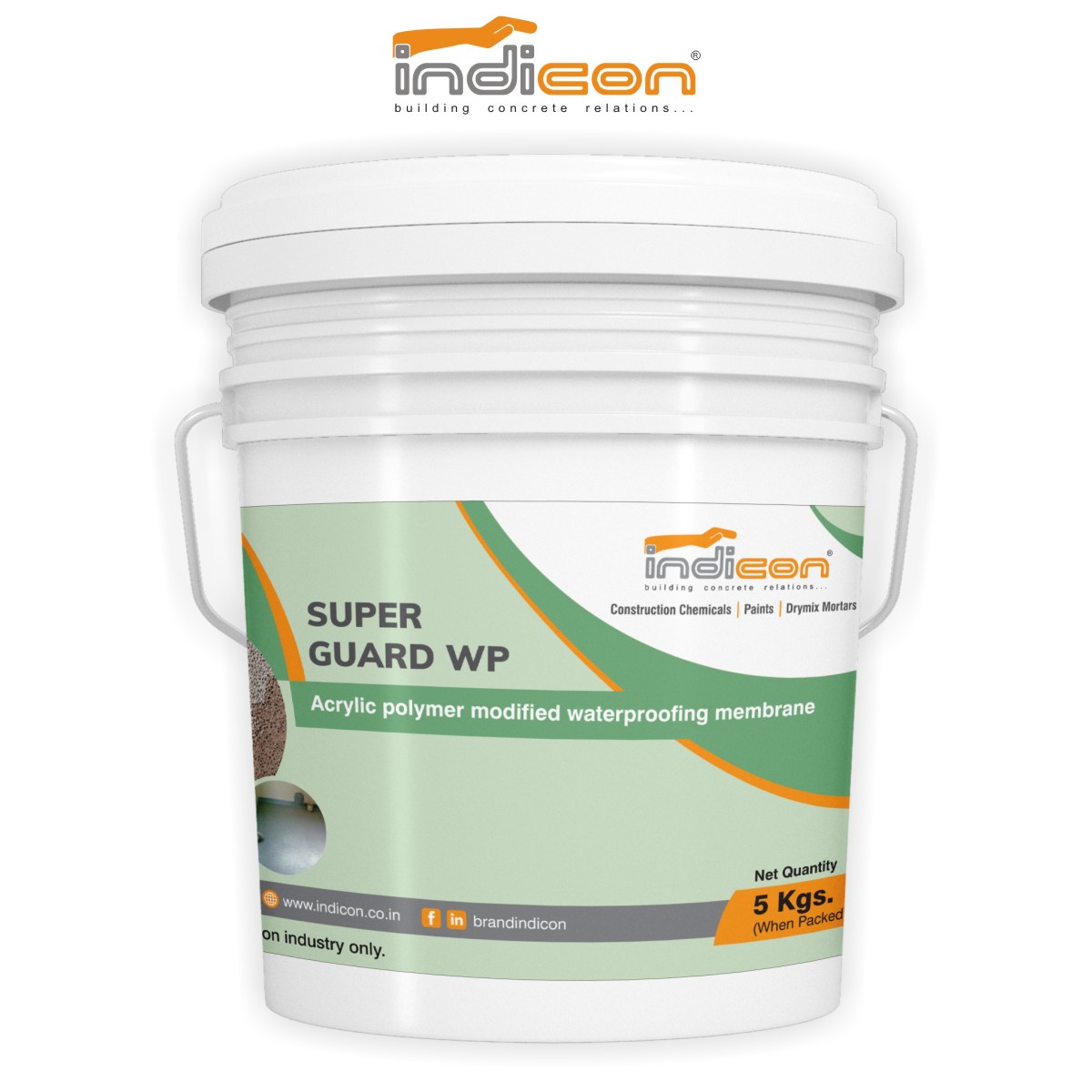 Super Guard WP is an economical, cement based, structural waterproofing material that can be applied as slurry. It is a two component acrylic polymer modified elastomeric waterproofing membrane which consists of powder and acrylic emulsion. It requires only the addition of water on site and when mixed in the proper proportions, an easily brushable coating is produced. It can simply be applied by a stiff brush, or trowel to obtain the desired thickness. The powder consists of specially selected cements, graded hard-wearing aggregates and additives supplied in powder and the liquid component of blended acrylic copolymers. The polymer provides exceptional adhesion, toughness and durability.