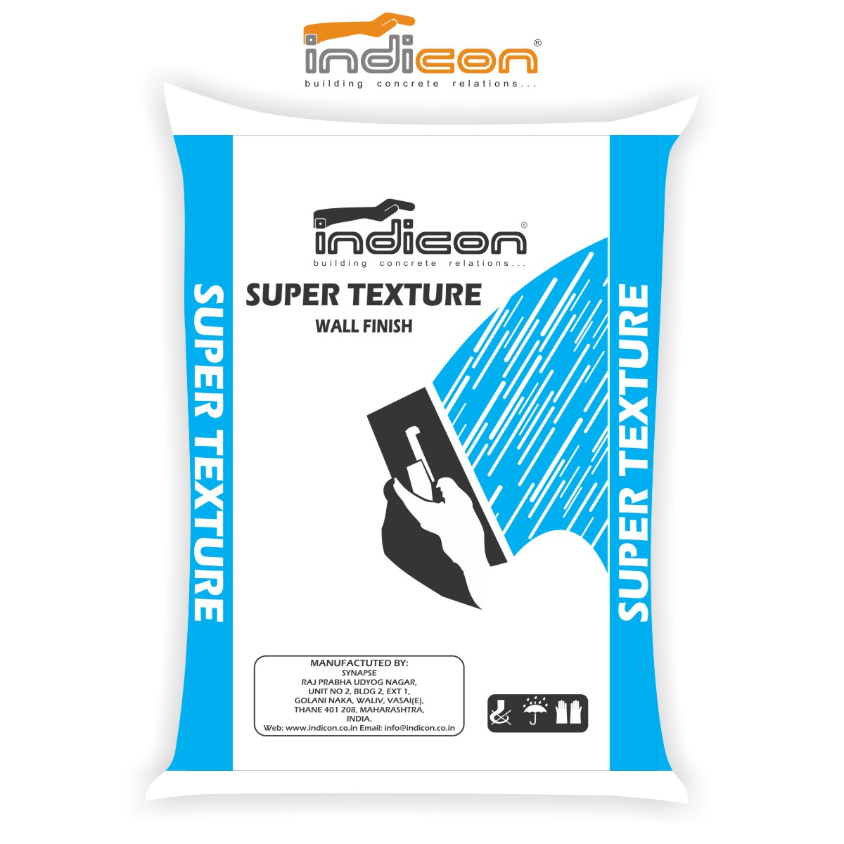 INDICON Super Texture is a ready to use, economical, acrylic polymer based textured finish for beautifying and protecting concrete structures for long periods. It is not only simple decorative and aesthetic render, but also highly durable coating. It is recommended for exterior as well as interior applications. It is supplied as light beige / off white colored paste. It needs to be top coated with desired shade of an acrylic exterior coating.
